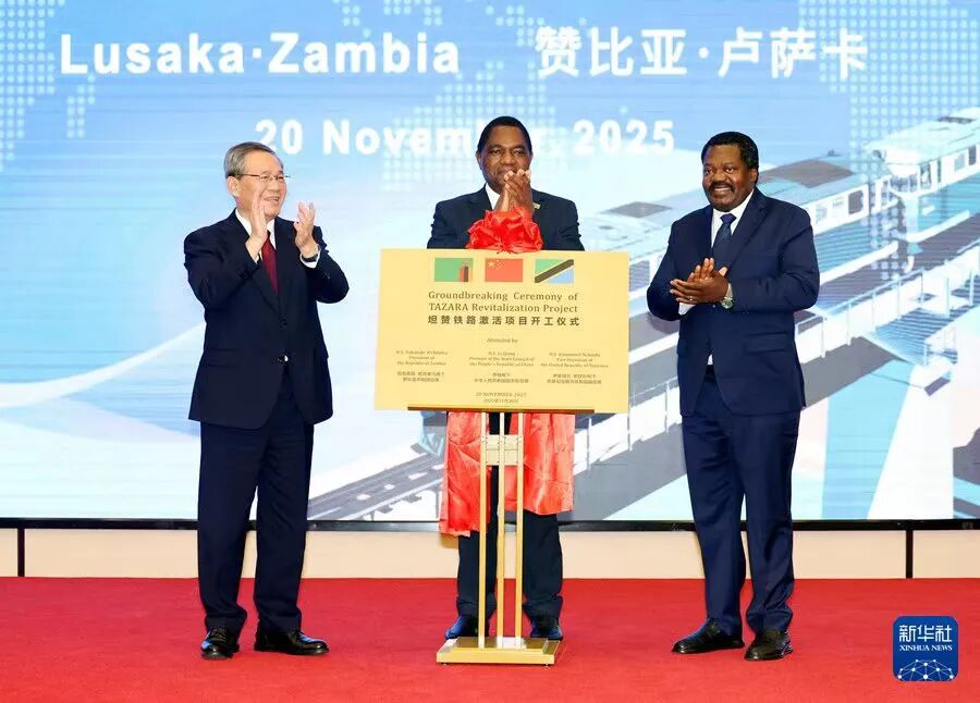 李強指出,中國政府將會同坦贊兩國政府,為鐵路激活提供必要支持和保障。希望中坦贊三方堅持高質量、高標準推進施工建設,把項目打造成優(yōu)質高效、安全可靠的精品工程,樹立高質量共建“一帶一路”的標桿。中方愿協(xié)助贊方、坦方推動坦贊鐵路繁榮帶建設,合力打造新的經濟增長樞紐,同時在沿線合作實施醫(yī)療衛(wèi)生、減貧惠農等更多“小而美”項目,更好促進民生改善。中方也愿同贊方、坦方以鐵路激活為契機,推進鐵路、公路、港口等基礎設施“硬聯(lián)通”,加強海關、商檢、稅務等領域“軟聯(lián)通”,不斷提升貿易和投資便利化水平,促進中坦贊之間、中非之間的市場、產業(yè)融合對接,匯聚更大發(fā)展合力。展望未來,中非合作前景廣闊。中方愿同贊比亞、坦桑尼亞等廣大非洲國家一道努力,進一步弘揚坦贊鐵路精神,落實好中非合作論壇北京峰會成果,推動新時代全天候中非命運共同體建設不斷走深走實。